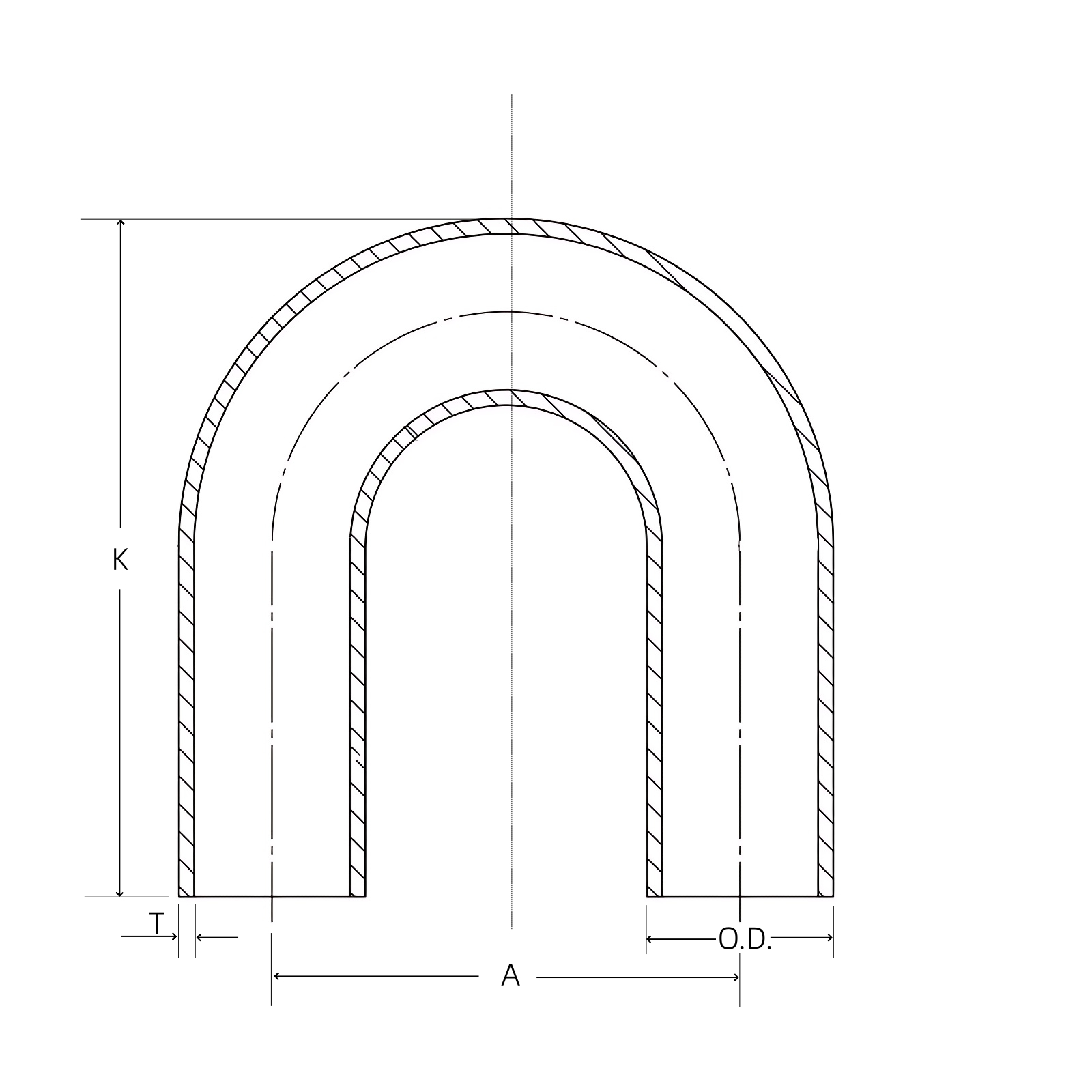 Ang liko radius ng 180 ° mahabang radius siko ay malaki, sa pangkalahatan 1.5 o 2 beses ang diameter ng pipe. Ang mga long-radius bends ay tumatagal ng mas maraming puwang kaysa sa mga short-radius bends, at ang kanilang kurbada ay mas banayad.