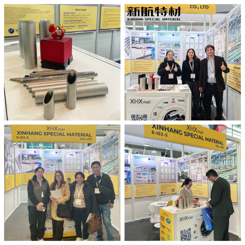 Sa prestihiyosong kaganapang ito, Xinhang Espesyal na Materyal – isang propesyonal na tagagawa na nakatuon sa hindi kinakalawang na asero na walang putol na mga tubo – buong pagmamalaking ipinakita ang aming pinakabagong mga kakayahan at mga de-kalidad na produkto sa Booth No. 6-I02-5. Sa loob ng limang araw ng eksibisyon, ang aming booth ay nakakuha ng tuluy-tuloy na daloy ng mga bisita mula sa Europa, Gitnang Silangan, Hilagang Amerika, at Timog-silangang Asya. Nakipag-ugnayan ang aming technical at sales team sa mahigit 80 malalim na talakayan sa mga potensyal na kliyente, eksperto sa industriya, at mga kasosyo sa supply chain. Maraming bisita ang nagpakita ng matinding interes sa aming mga cold-drawn seamless stainless steel tubes, na malawakang ginagamit sa mga demanding sector gaya ng petrochemicals, boiler at heat exchanger, oil at gas, shipbuilding, at mechanical engineering.