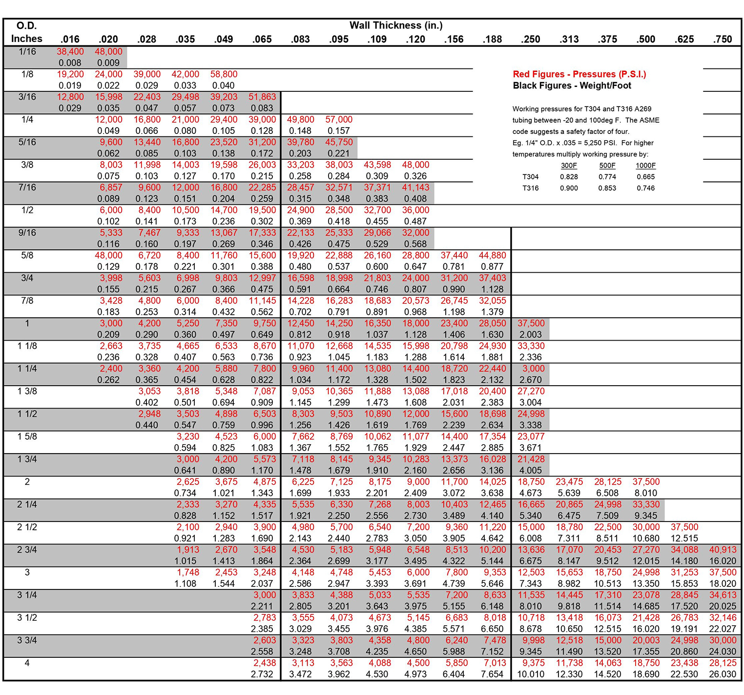 Hindi kinakalawang na tubing teoretikal na pagpilit ng pagsabog at timbang $